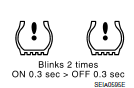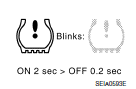 | The low tire pressure warning lamp repeats blinking ON for 2 seconds and OFF for 0.2 seconds. | ![]() |