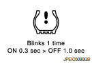 (Example: Blinks once/OFF/blinks 3 times = Wake-up operation is not completed at the front left wheel and rear right wheel tire pressure sensors.)