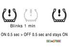 NOTE: If tire pressure sensor wake-up operation is not completed for two or more tire pressure sensors, the applicable low tire pressure warning lamp blinking patterns are displayed continuously.